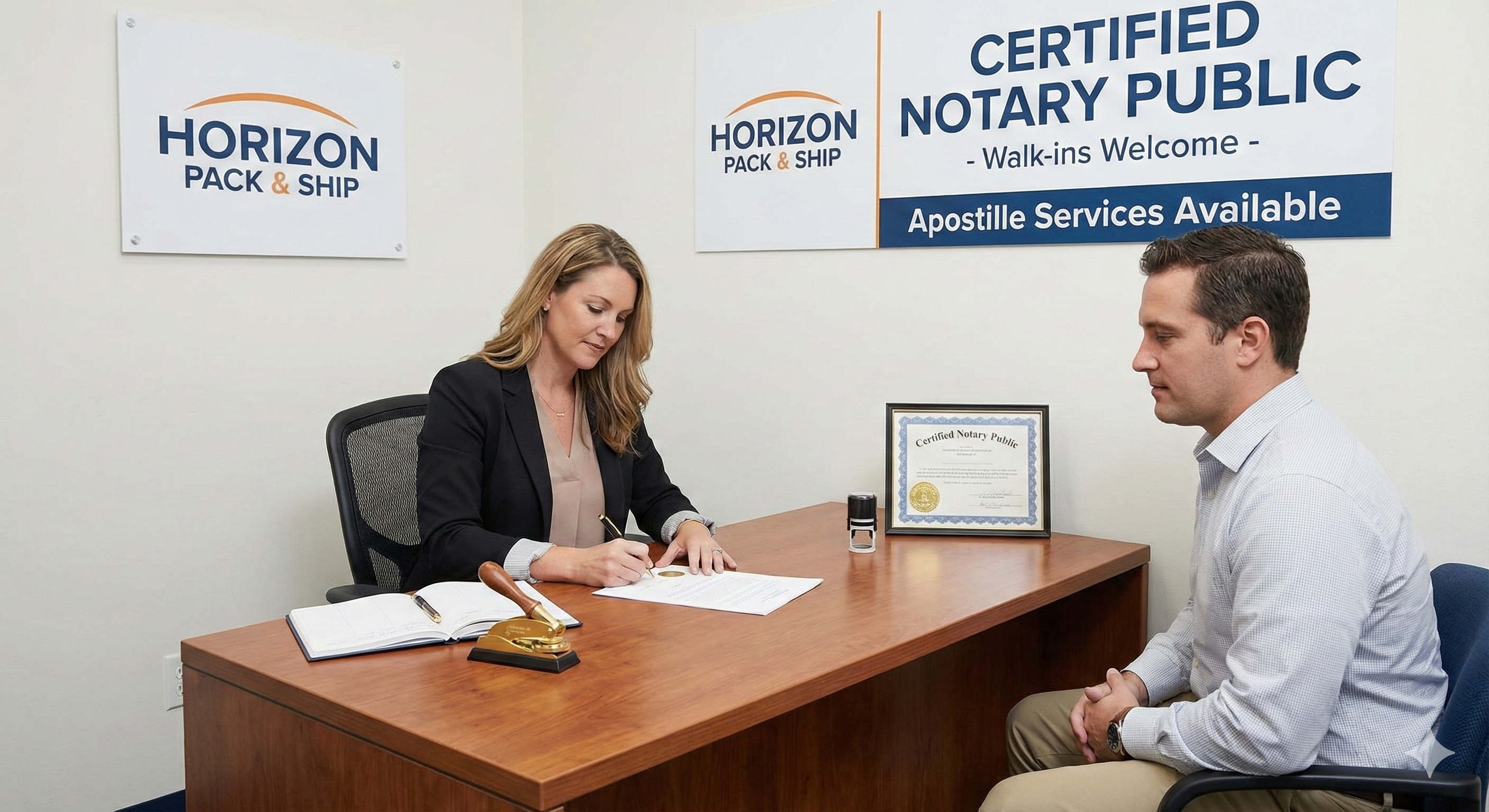 Horizon Pack and Ship provides professional notary services in Radcliff, Kentucky for personal, business, and legal documents. Our trained notaries ensure documents are properly verified, signed, and completed according to Kentucky notary requirements.